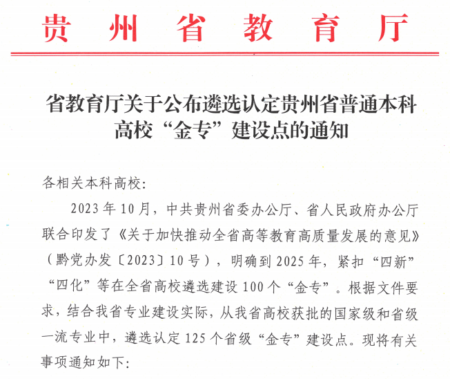 喜訊!我校四個專業入選貴州省“金?!苯ㄔO點